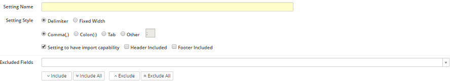 •Setting name – assign a name for the new setting. The name should be descriptive enough that when processing an import or export a user will immediately know which setting is the appropriate one to select.
