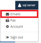 1. Click on the User Account button at the top right corner of the application and select Emails.