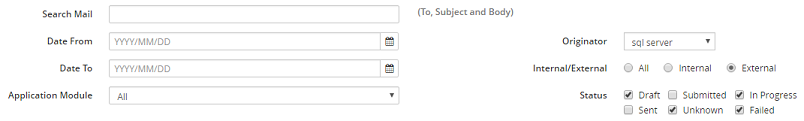 7. If applicable, in the Status section, select or deselect any of the following selection boxes: Draft, Submitted, In Progress, Sent, Unknown, and/or Failed.