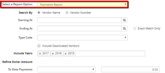 The Vendor Payments Report displays the payments to date based on specified parameters.