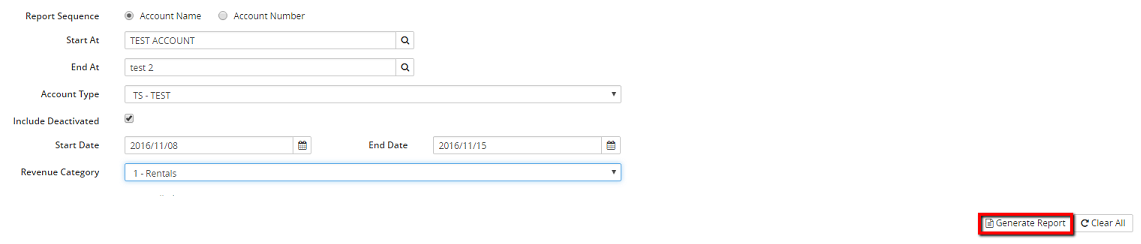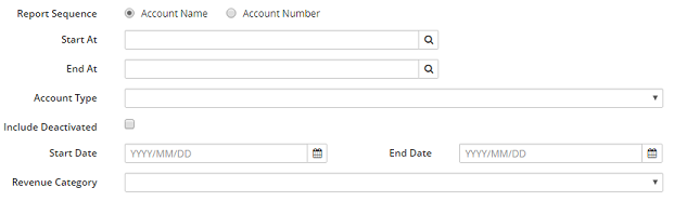 2. If applicable, in the Report Sequence section, select the Account Name (selected by default) or Account Number radio button.