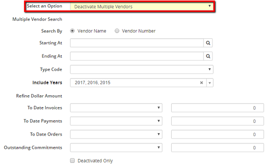 2. In the Select an Option drop-down menu and select Deactivate Multiple Vendors.
