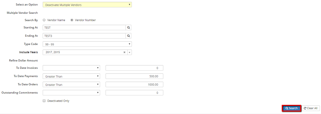 Note: Refer to How to use Vendor Search for more information on how to use this feature.