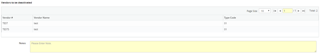 12. In the Deactivate Multiple Vendors Review screen, under the Vendors to be deactivated section, review the vendors to be deactivated.