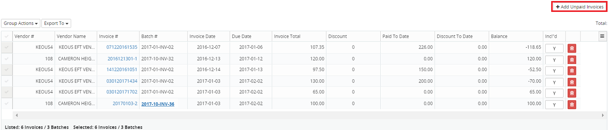 Note: Refer to How to Select and Add Unpaid Invoices for more information on this process.