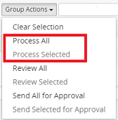 8. Click on the Group Actions drop-down menu and select one of the following: Process All or Process Selected.