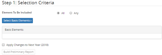 7. If applicable, click on the Build Preliminary Report button. The grid below will populate with the search criteria and the Step 2: New Account Information section will become available.