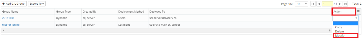 6. Click on the Action drop-down menu beside the corresponding G/L account and select Modify.