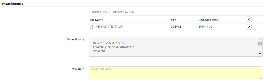 17. If applicable, in the Attachments section, update existing files or upload new files by clicking on the corresponding tab.