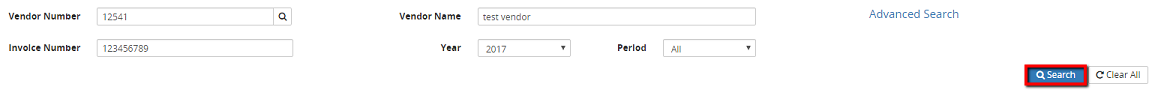 6. Click on the Search button. The invoice(s) that meet the search criteria will be retrieved and displayed in the grid.