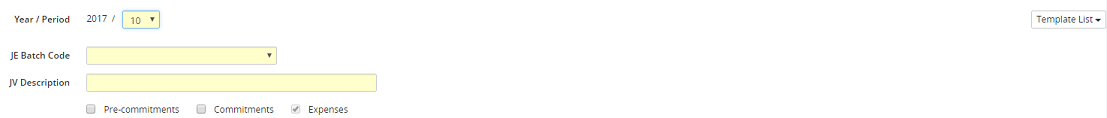4. Click on the JE Batch Code drop-down menu to select a batch code.