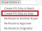 4. Click on the Group Actions drop-down menu and select Create PO Step by Step.