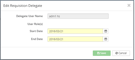 4. Click on the Save button or click on the Cancel button to cancel the modify requisition delegate process.
