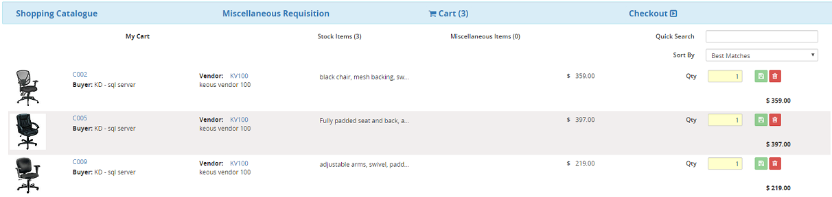 Requisitions are created to allow the user to request stock or miscellaneous items that are needed for a School or Board from the Shopping Cart. Requisitions may be entered for different vendors. A requisition number will be system generated for each vendor upon successfully saving the requisition.