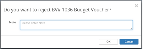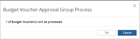 2. Click on the OK button or click on the Cancel button to cancel the approve budget voucher process and return to the Budget Voucher Approval Edit screen.