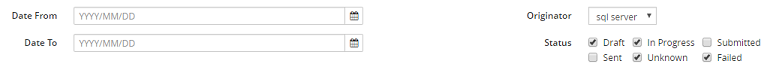 4. If applicable, in the Status section, select or deselect any of the following selection boxes: Draft, In Progress, Submitted, Sent, Unknown, and/or Failed.