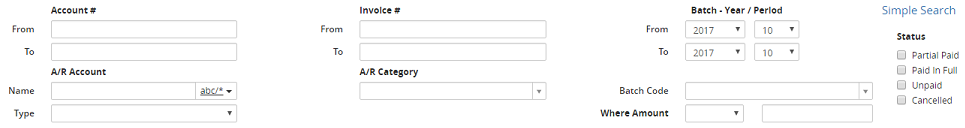 1. In the A/R Invoice Management screen, click on the Advanced Search link. The advanced search fields will be displayed.