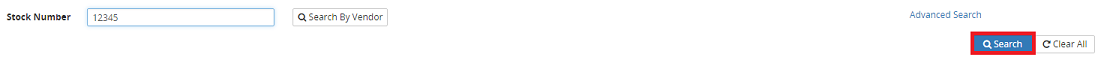 2. Enter a partial or full Stock Number, or click on the Search By Vendor button.