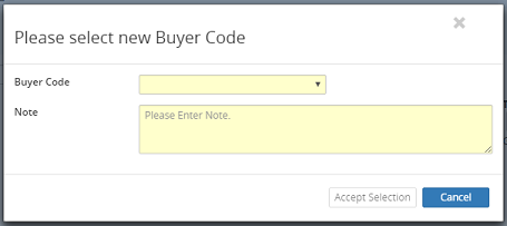 6. In the Please select new Buyer Code dialog box, click on the Buyer Code drop-down menu to select an option.