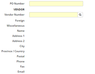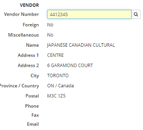 Once a Vendor Number is provided, the appropriate fields will display the vendor information.
