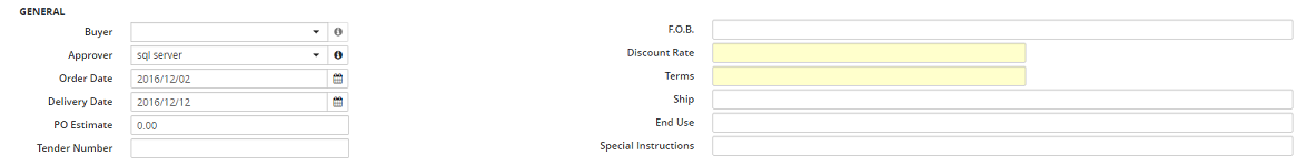 16. Enter the Terms. Default: Vendor Terms or as setup in PO Default settings.