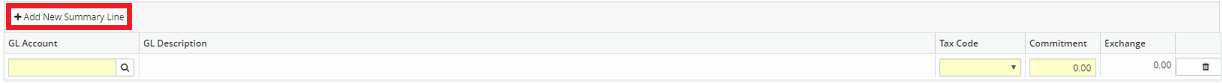 1. In the New Purchase Order [Summary Mode] screen click on the Add New Summary Line button. A new line is inserted in the grid.