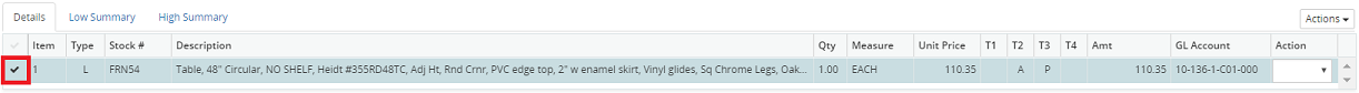 1. Select any line item displayed in the grid, by clicking the corresponding check mark beside the item.