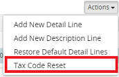 2. Click on the Actions drop-down menu above the grid and select Tax Code Reset.