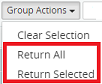 6. Click on the Group Actions drop-down menu and select one of the following: Return All or Return Selected.