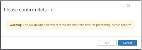 7. Click on the OK button or click on the Cancel button to cancel the cheque return process.