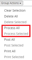 7. Click on the Group Actions drop-down menu and select one of the following: Process All or Process Selected.