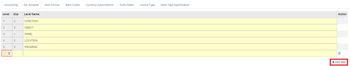 5. In the new line, under the Level column, enter a unique, two (2) digit maximum level.