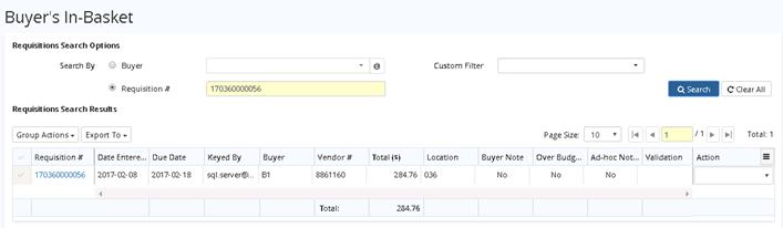Example 2: If the Amount Not Exceed field is set at 500.00 and the Shopping Cart shows that the requisition does not exceed the 500.00 threshold, the Approver field Auto Approved is displayed and the requisition is sent to the Buyers In-Basket.