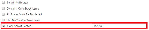 Note: If Amount Not Exceed is selected the amount to not exceed needs to be entered in the field to the right.