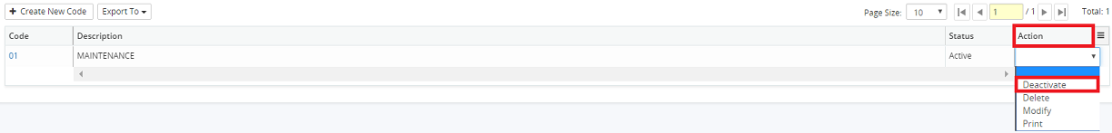 2. Click on the Action drop-down menu beside the corresponding commodity code and select Activate or Deactivate.