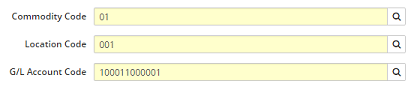 The Commodity Code G/L Defaults Add is responsible for collecting the different variations of Location Codes and GL Account Codes. The combination of the three codes must be unique.
