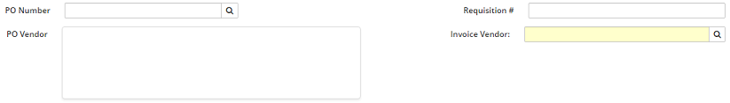 4. In the New Invoice or Online Cheque Entry screen, enter one of the following: PO Number, Requisition # or Invoice Vendor or click on the Search icon to search for a PO Number or Vendor.