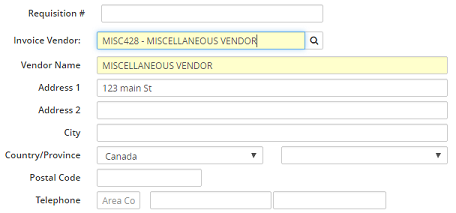5. Enter the name of the miscellaneous vendor in the Vendor Name field.