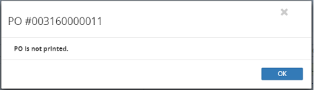 Note: If the PO Number was entered and the PO selected has not been printed a message will be displayed in a pop up window. Read and click OK to continue.