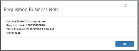 If an invoice note has been created for the requisition associated with the PO, a note will be displayed in a pop up window. Read and click OK to continue.