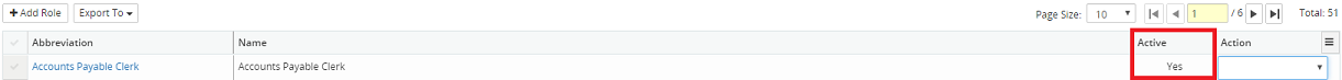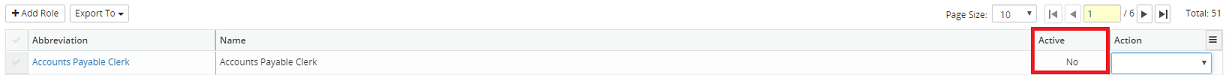 3. In the Active column, the status of the role will change to No if deactivated, and Yes if activated.
