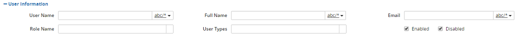 2. If applicable, enter the User Name, Full Name and/or Email and if needed, use the wild card search button.