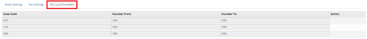 The Fax Local Numbers tab is used to create and edit all local numbers in the boards area for faxes to be sent to.