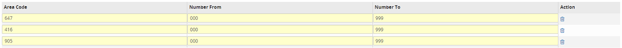 4. If applicable, update the Area Code, Number From and/or Number To for any line items.