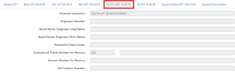 2. Click on the SCOTIA EFT 80 BYTE tab.