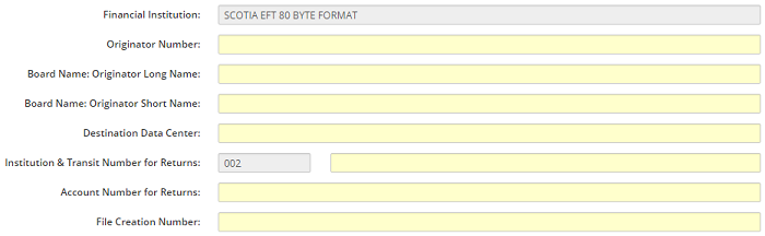 Use the following steps to edit the SCOTIA EFT bank settings: