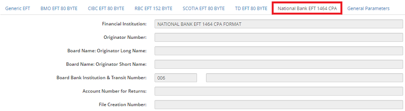 2. Click on the National Bank EFT 1464 BYTE tab.
