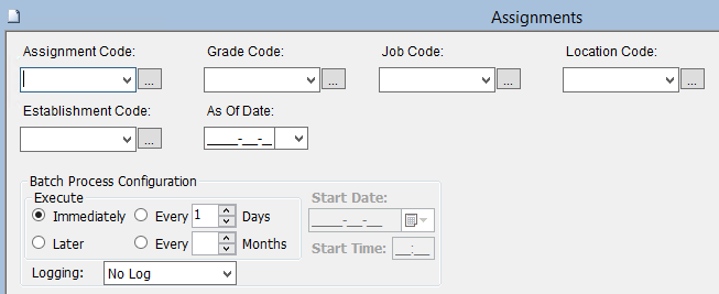 This screen produces the Employee Assignments Report; which contains a list of Employees that match the user’s Selection Criteria.