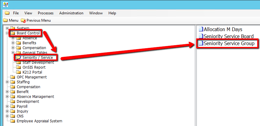 Use the following steps to Add/Modify Seniority / Service Groups: