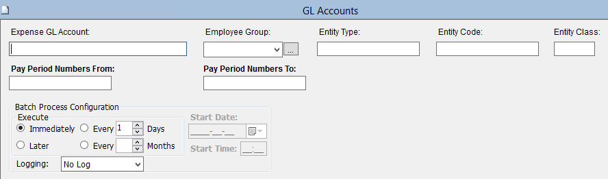 This screen produces the Employee GL Accounts Report; which contains a list of Employees that match the user’s Selection Criteria.